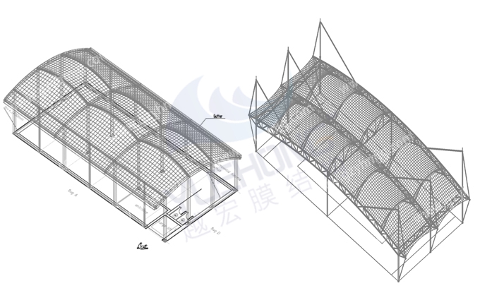 越宏膜結構廠家的游泳池膜結構遮陽棚是由鋼結構和膜材組成,分別有張拉式膜結構、索膜結構、骨架式膜結構、空間結構式等供選擇,根據(jù)不同場景進行設計出個性化膜結構。